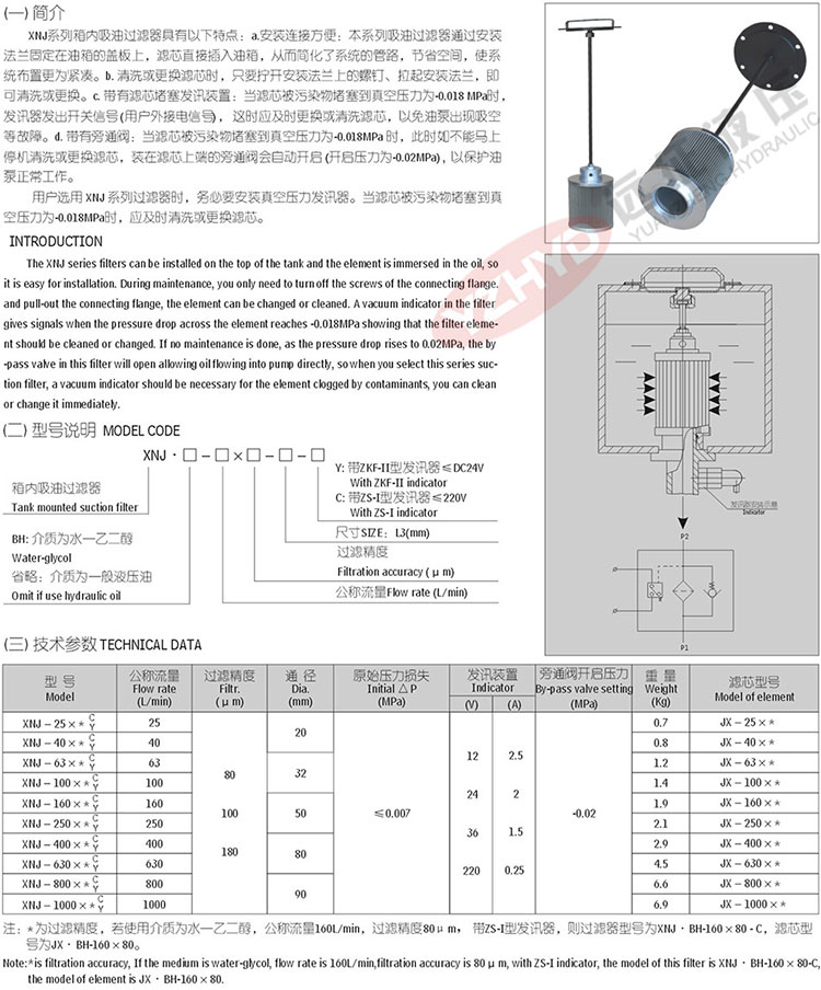 )的专 业厂家,长期以来为冶金、石油、矿山、工程、建筑、塑机、化工、机床、交通等行业的液压设备提供配套,同时为引进设备提供高品质的国产化备件。今天远征主讲XNJ系列箱内吸油过滤器(新型),详情请看下图: